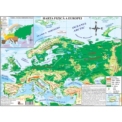- harta fizică a Europei (faţă) - conţine şi câteva date generale despre EUROPA şi harta Unităţilor Morfostructurale.