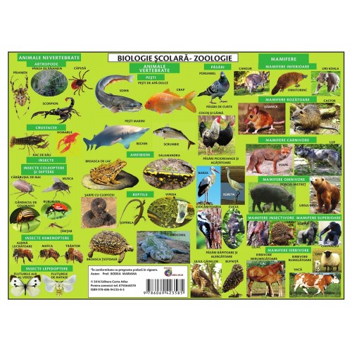 Plansa Biologie scolara - ZOOLOGIE este elaborată în conformitate cu programa scolara in vigoare.